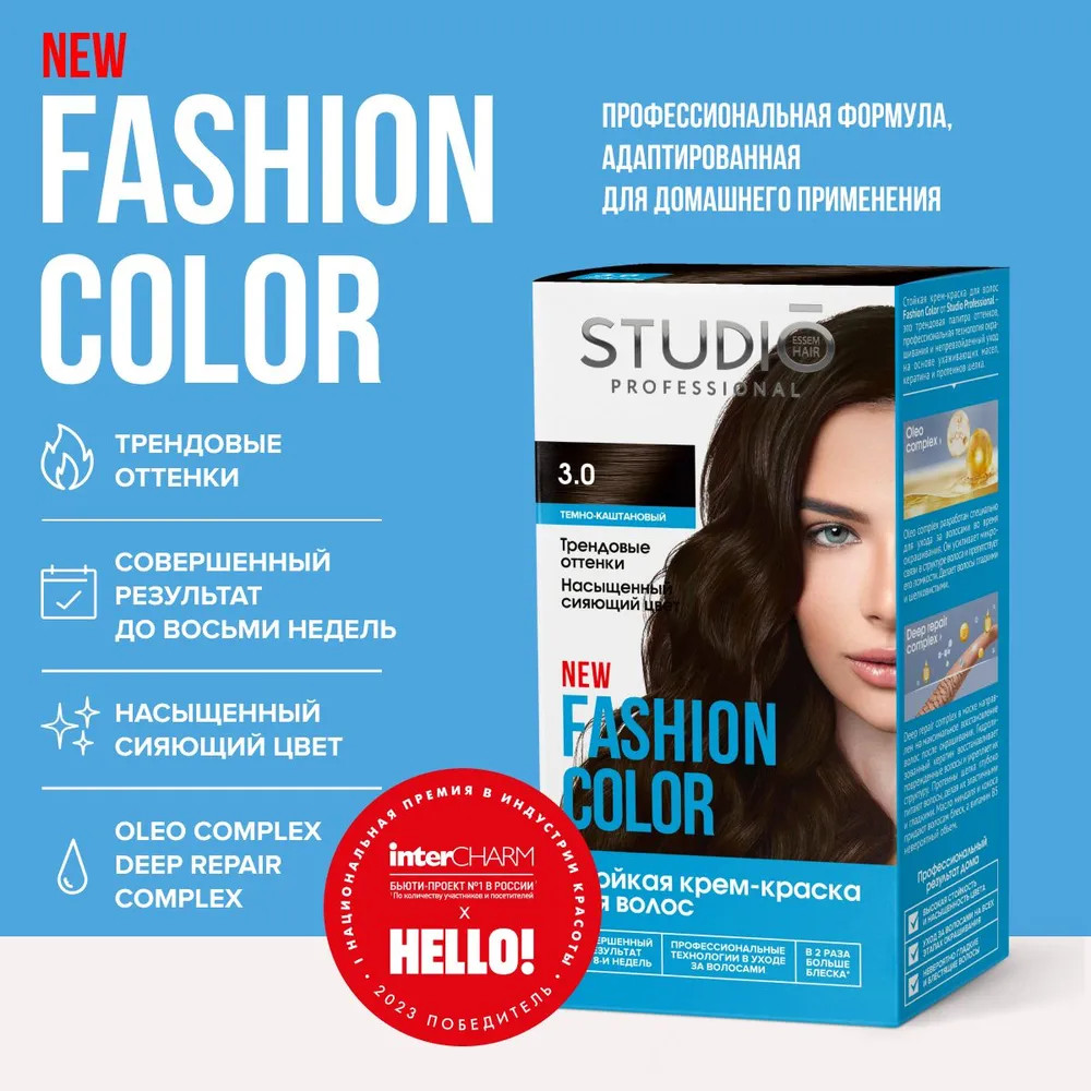 Studio Professional Краска для волос «Fashion Color», оттенок 3.0 Тёмно-каштановый