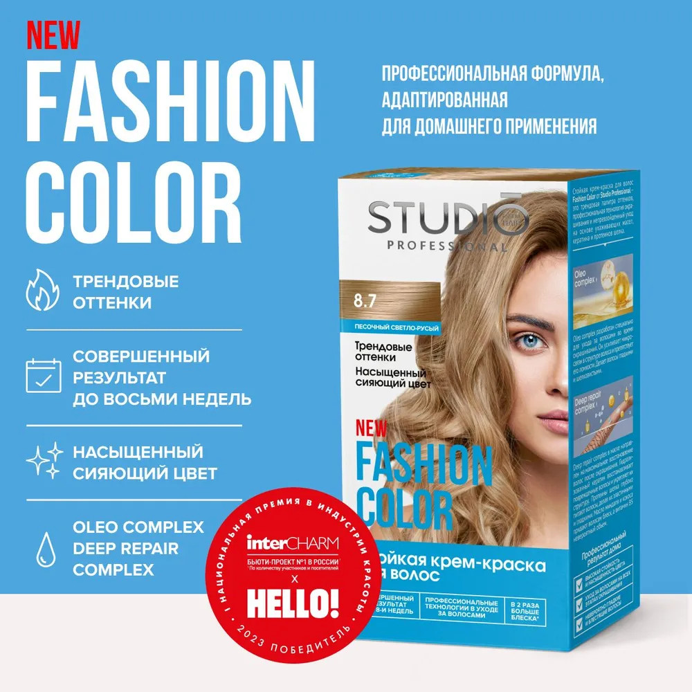 Studio Professional Краска для волос «Fashion Color», оттенок 8.7 Песочный светло-русый