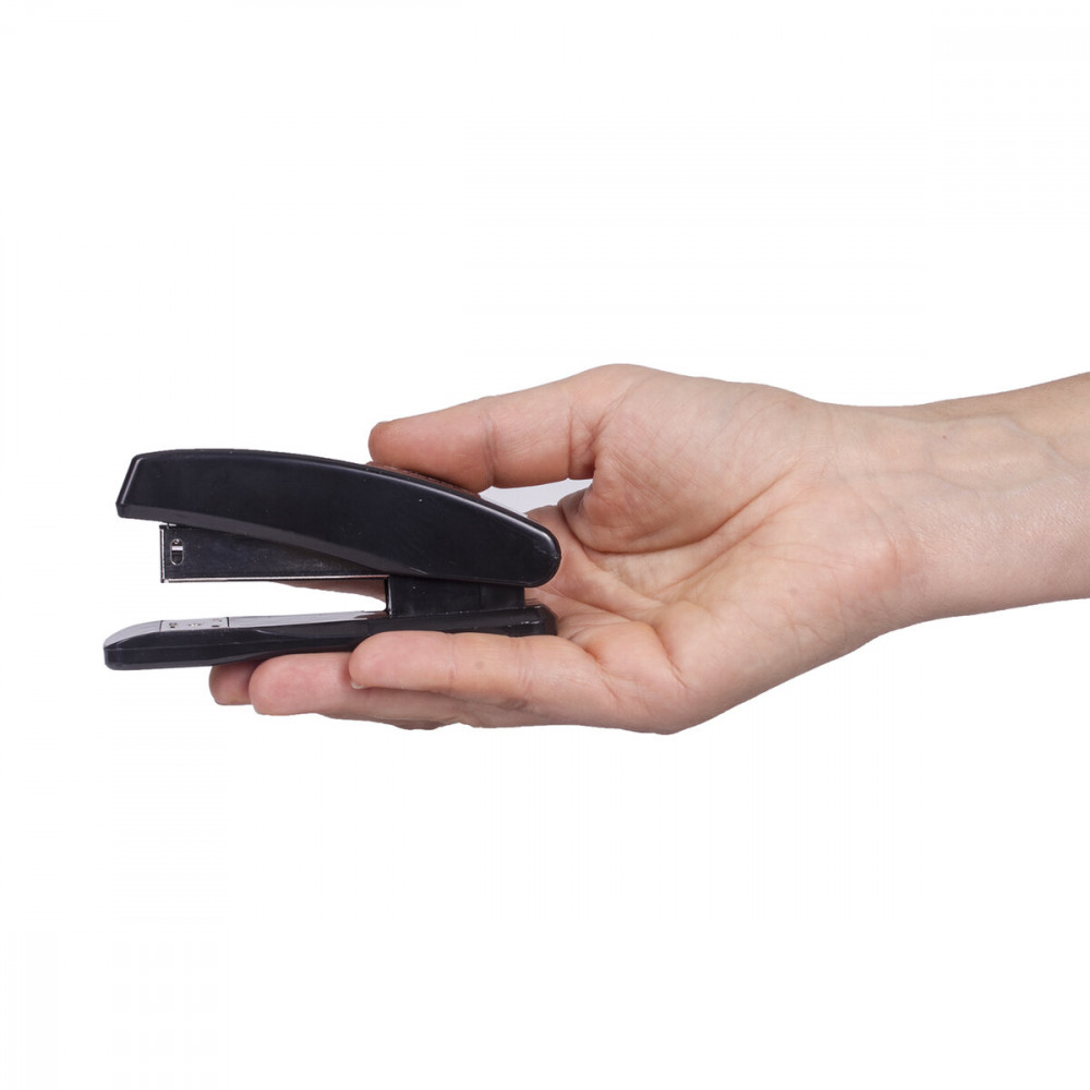 Настольный степлер с металлическим механизмом Staff незаменим в работе с большим объемом документов. Полезный аксессуар, который можно встретить на столе не только офисных работников и предпринимателей, но и школьников и студентов. Способен скрепить до 20 листов. Стандартный размер скоб № 24/6, 26/6. Глубина закладки бумаги — 50 мм. Виды сшивания: закрытый, открытый, прямой. За счет компактных размеров не займет на рабочем столе много места, а классический черный цвет отлично будет дополнять любой интерьер.