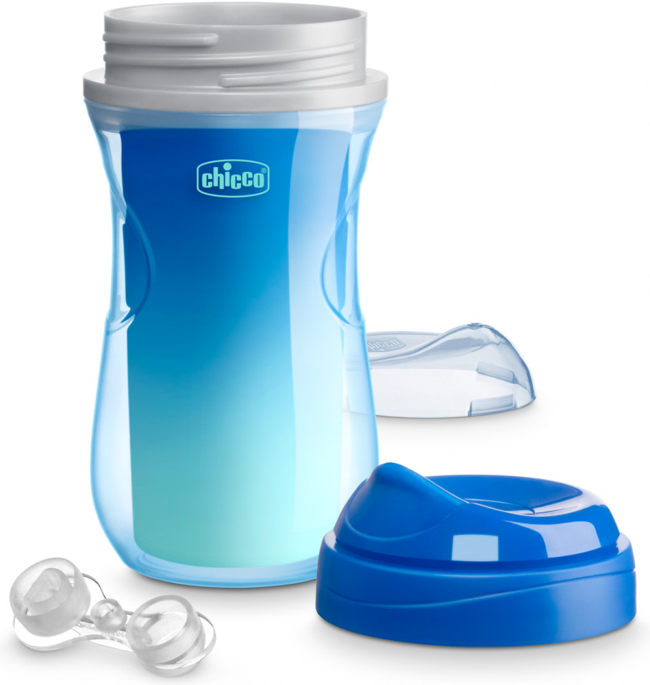 Поильники незаменимы во время прогулки. Для удобства использования поильник имеет эргономичную форму чашки с внутренней колбой, позволяющей сохранять температуру жидкости. Форма носика (ободок) — напоминает край взрослой чашки и во время питья способствует правильному расположению губ и языка ребёнка. Носик-ободок выполнен из пластика, устойчив к укусам острыми детскими зубками. Запатентованная конструкция силиконового клапана препятствует проливанию жидкости. По мере взросления ребенка и развития навыка самостоятельного питья поильник можно использовать и без клапана, в этом случае будет создаваться сильный поток жидкости. Защелкивающаяся пластиковая крышечка носика поильника защитит от пыли и загрязнений. Миксуй & Меняй (Miх&Match) — уникальная характеристика поильников Chicco, все элементы которых (носики, ручки, чашки) можно миксовать, создавая новые формы и модные комбинации. Яркие и веселые расцветки поильников с забавными рисунками превратят процесс обучения в игру и развлечение.