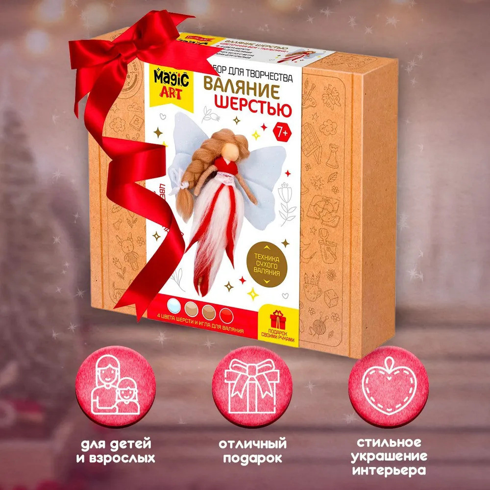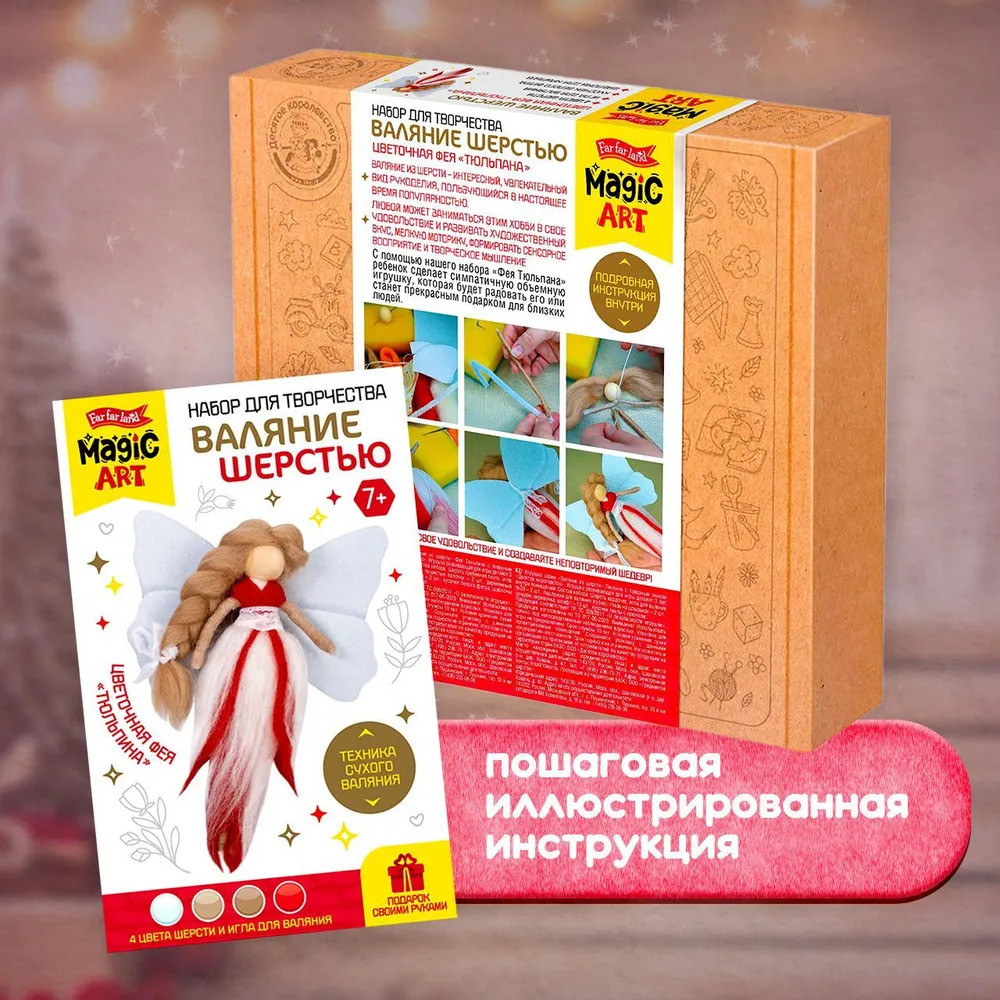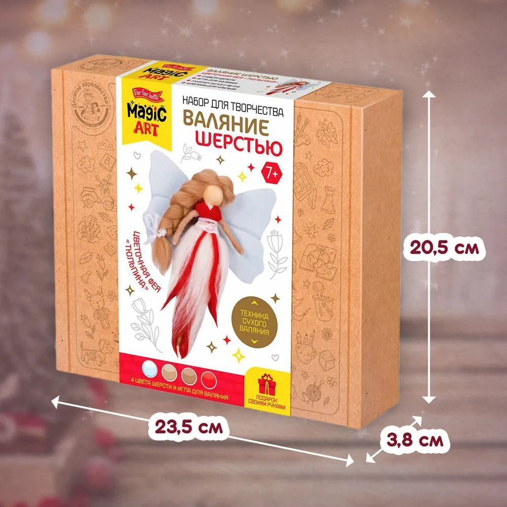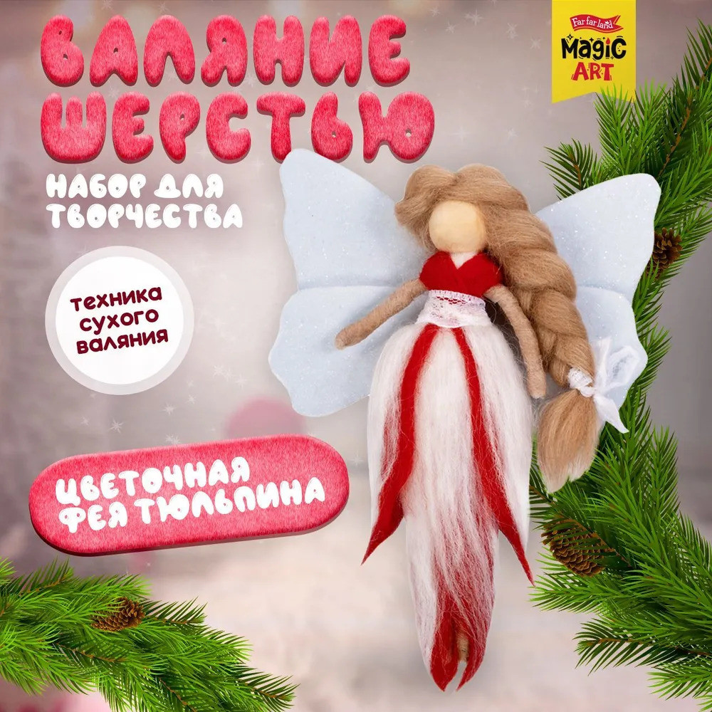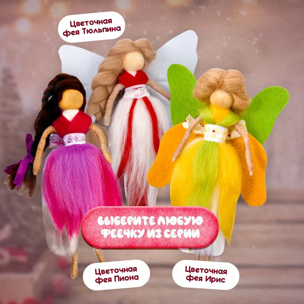С помощью набора «Цветочная фея Тюльпина» ребенок сделает симпатичную объемную игрушку из шерсти в технике сухого валяния. В наборе есть все необходимое для этого вида творчества.