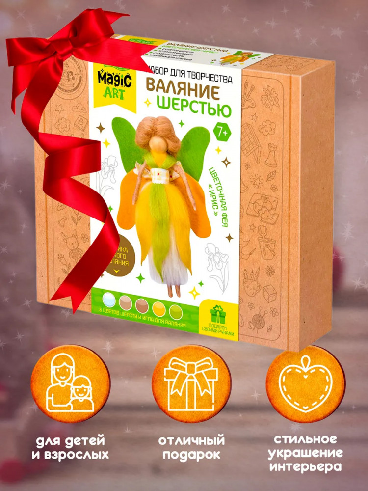 💳 Оплатить за товар можно при получении 🇰🇿 Есть бесплатная доставка по Казахстану от 1 дня 🎁 Копите бонусы с каждой покупки Серия: Magic art С помощью набора «Цветочная фея Ирис» ребенок сделает симпатичную объемную игрушку из шерсти в технике сухого валяния. В наборе есть все необходимое для этого вида творчества. |