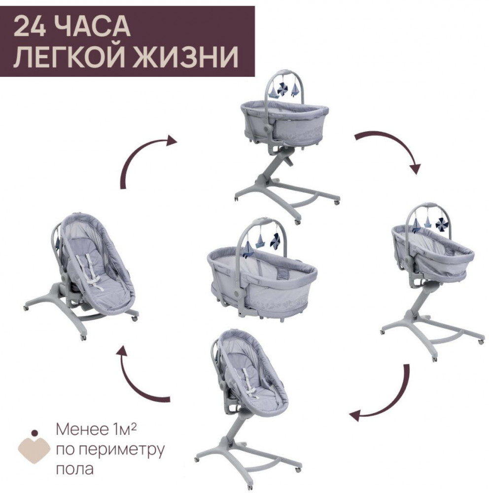 Благодаря портативной детской кроватке, отсоединяемой от конструкции и четырем ручкам для переноски, Baby Hug Pro 5 в 1 — идеальное решение для практичных родителей! Кроватка-трансформер Chicco BABY HUG PRO может использоваться как колыбель, а также трансформироваться в отдельно стоящую кроватку, шезлонг, стульчик для кормления и первый стул для ребёнка. Подходит для детей с рождения до 3-х лет. И занимает всего один квадратный метр площади.