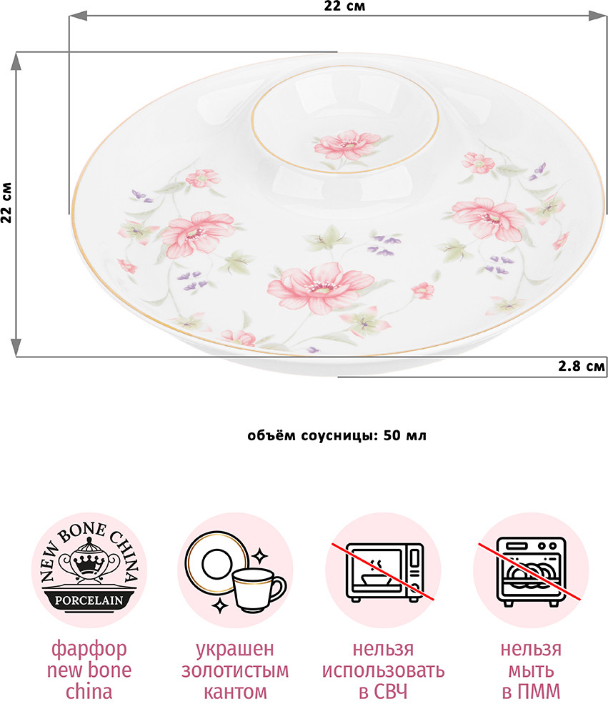 💳 Оплатить за товар можно при получении 🇰🇿 Есть бесплатная доставка по Казахстану от 1 дня 🎁 Копите бонусы с каждой покупки Серия: Диана Блюдо Elan Gallery «Диана» размером 22 × 22 × 2.8 см с соусницей выполнено из фарфора. На тарелке изображены розовые и фиолетовые цветы. По краям украшена золотистым кантом. Объём отсека для соуса — 50 мл. Соусник является неотделимой частью блюда. Его можно использовать под кетчуп или майонез. Круглая тарелка подойдёт для сервировки закусок, нарезки, блюд из мяса или рыбы. Очень удобна для подачи суши и ролл, так как вам не придётся искать отдельную ёмкость для соевого соуса. Сервировочное блюдо пригодится, чтобы создать идеальную атмосферу для приема гостей или романтического ужина дома. Возьмите это блюдо на дачу или пикник, чтобы использовать для шашлыка. Не рекомендуется применять абразивные моющие средства. Из-за золотого окаймления нельзя использовать в микроволновой печи и мыть в посудомоечной машине. Поставляется в стильной картонной упаковке. Эта тарелка станет отличным подарком для любой хозяйки, которая ценит изящную сервировку. Блюдо для сервировки «Диана» с секцией для соуса станет настоящим украшением вашей кухни или приятным подарком для родных и близких. |