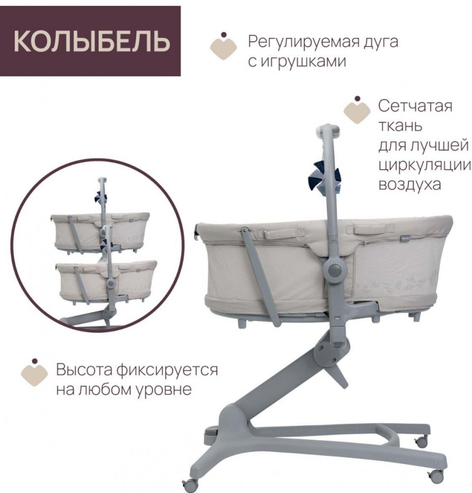 • Сетчатая поверхность по периметру кроватки помогает свободно циркулировать воздуху.