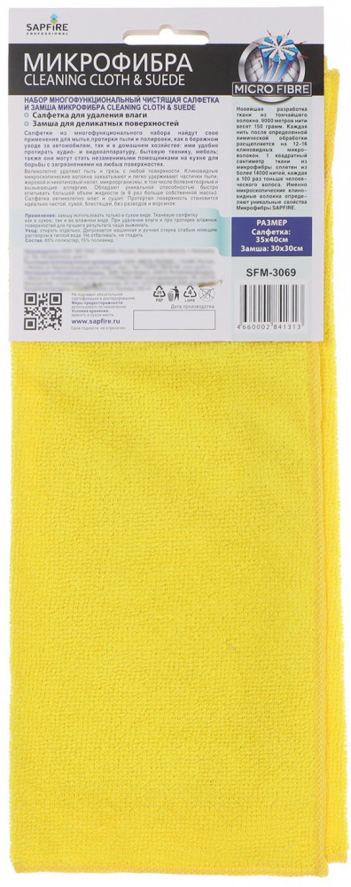 Saphire Набор салфеток для автомобиля «Cleaning cloth & Suede»В данный момент этот товар отсутствует в продаже. Возможно, у нас найдется аналогичный или похожий товар здесь. Многофункциональный набор Cleaning cloth & Suede Sapfire состоит из искусственной замши для деликатных поверхностей и салфетки для удаления влаги. Нежная текстура искусственной замши идеально подходит для сухой протирки деликатных поверхностей. Тканевая салфетка, обладая прекрасными абсорбирующими свойствами, идеально подходит для протирки автомобиля после мытья, а также для бережного удаления влаги с любых поверхностей. Материал (микрофибра) обладает уникальной способностью быстро впитывать большой объем жидкости (в 8 раз больше собственной массы). Салфетка великолепно моет и сушит. Протертая поверхность становится идеально чистой, сухой, блестящей, без разводов и ворсинок. |