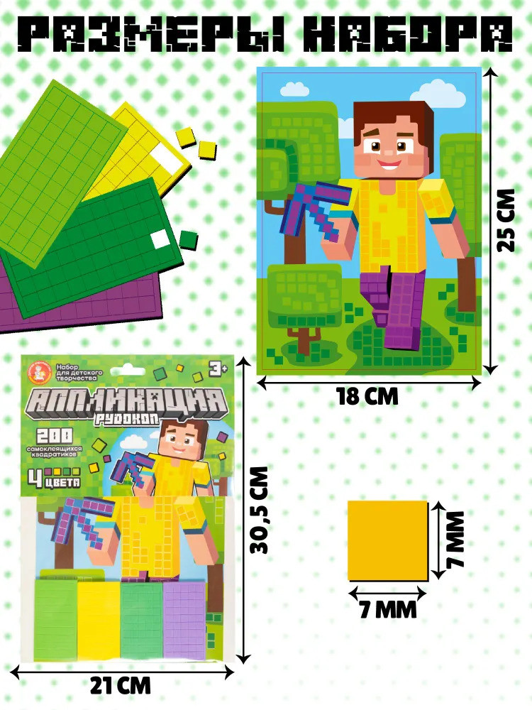 Аппликация для детей «Рудокоп» — это набор для детского творчества с изображением персонажа известной игры. Украсьте картинку объемными самоклеящимися квадратиками и подарите другу или украсьте свою комнату. |