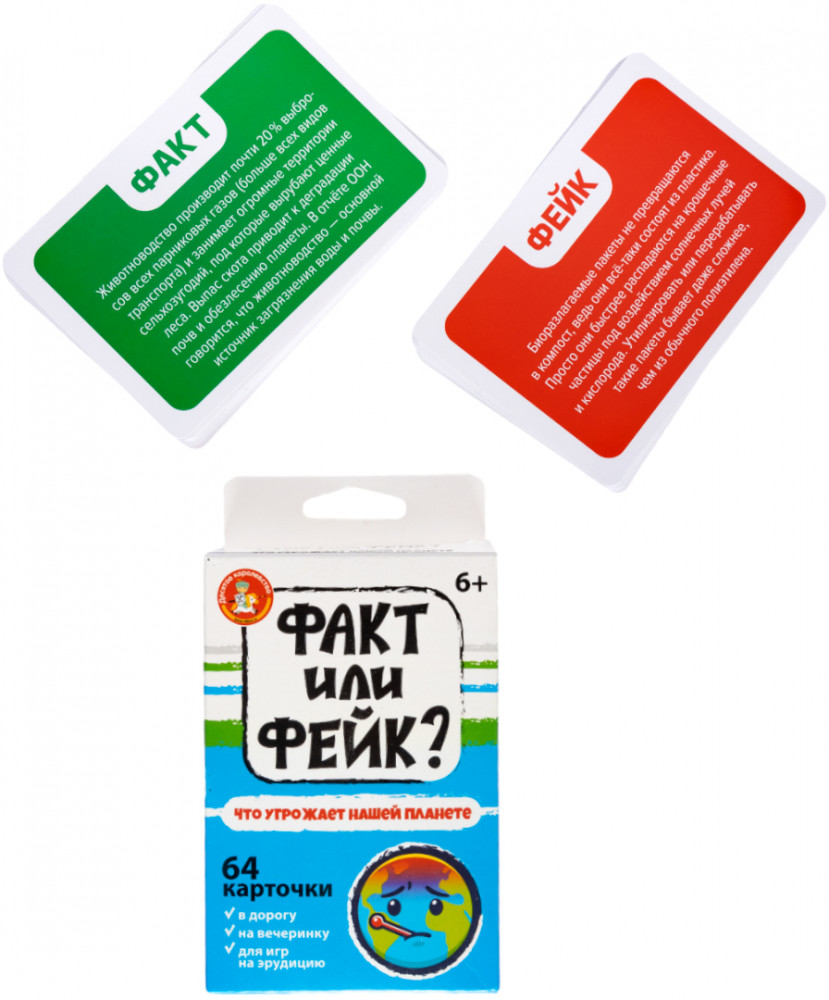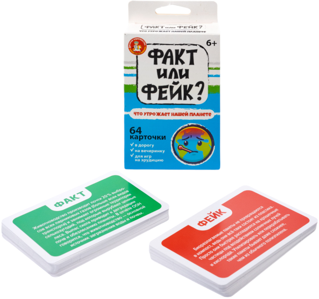 💳 Оплатить за товар можно при получении 🇰🇿 Есть бесплатная доставка по Казахстану от 1 дня 🎁 Копите бонусы с каждой покупки Серия: Факт или фейк Детская настольная игра для большой компании Факт или Фейк «Что угрожает нашей планете» — это увлекательная игра в «походном» формате, которую можно взять с собой на вечеринку, в гости или в дорогу. С этой игрой вы можете проверить свой уровень знаний в сфере экологии и защиты окружающей среды. |