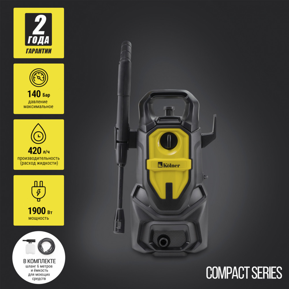 Обладая мощностью в 1900 Вт и максимальным давлением в 140 бар, эта мойка способна справиться с самыми застарелыми и сложными загрязнениями. Рабочий расход жидкости в 420 литров в час гарантирует высокую эффективность очистки на больших площадях, а длина шланга в 6 метров обеспечивает удобный доступ даже в труднодоступные места.В комплекте с мойкой вы найдете все необходимые аксессуары для максимально эффективной и удобной работы: пистолет высокого давления, удлинитель для пистолета, распылитель, емкость для моющего средства, а также специальные насадки для различных задач очистки.