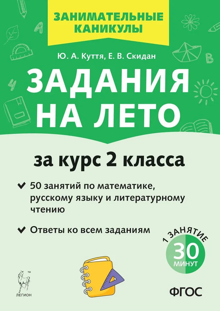 Задания на лето. 50 занятий по математике, русскому языку и литературному чтению. За курс 2 классаЮлия Александровна Куття, Евгения Владимировна Скидан -17% +14