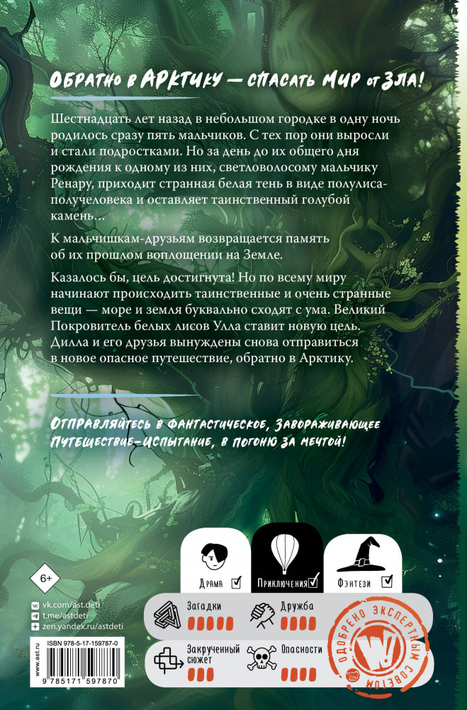 💳 Оплатить за товар можно при получении 🇰🇿 Есть бесплатная доставка по Казахстану от 1 дня 🎁 Копите бонусы с каждой покупки Серия: Путешествие Белого Лиса Шестнадцать лет назад в небольшом городке в одну ночь родились сразу пять мальчиков. С тех пор они выросли и стали подростками. Но за день до их общего дня рождения к одному из них, светловолосому мальчику Ренару, приходит странная белая тень в виде полулиса-получеловека и оставляет таинственный голубой камень... К мальчишкам-друзьям возвращается память об их прошлом воплощении на Земле. Казалось бы, цель достигнута! Но по всему миру начинают происходить таинственные и очень странные вещи — море и земля буквально сходят с ума. Великий Покровитель белых лисов Улла ставит новую цель. Дилла и его друзья вынуждены снова отправиться в новое опасное путешествие, обратно в Арктику. |