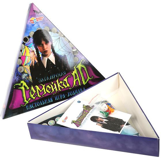 💳 Оплатить за товар можно при получении 🇰🇿 Есть бесплатная доставка по Казахстану 🎁 Копите бонусы с каждой покупки Настольная игра-ходилка в треугольной коробке «Загадочная семейка AD» ТМ «Умные игры» — увлекательная игра для всей семьи, в которой предстоит разгадать загадки странной школы! |