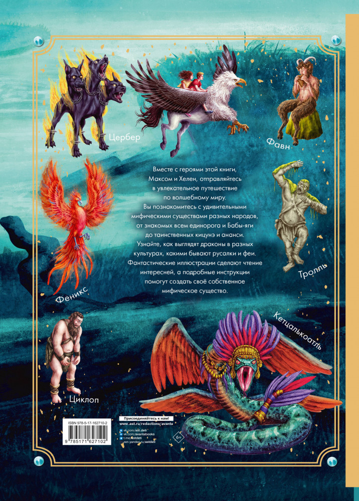 💳 Оплатить за товар можно при получении 🇰🇿 Есть бесплатная доставка по Казахстану от 1 дня 🎁 Копите бонусы с каждой покупки Серия: Энциклопедия тайн Вам предстоит отправиться в увлекательное путешествие по волшебному миру вместе с героями этой книги, Максом и Хелен. Вы познакомитесь с удивительными мифическими существами разных народов, от известным всем единорога и Бабы-яги до таинственных кицунэ и ананси. Узнаете, как выглядят драконы в разных культурах, какими бывают русалки и феи. |