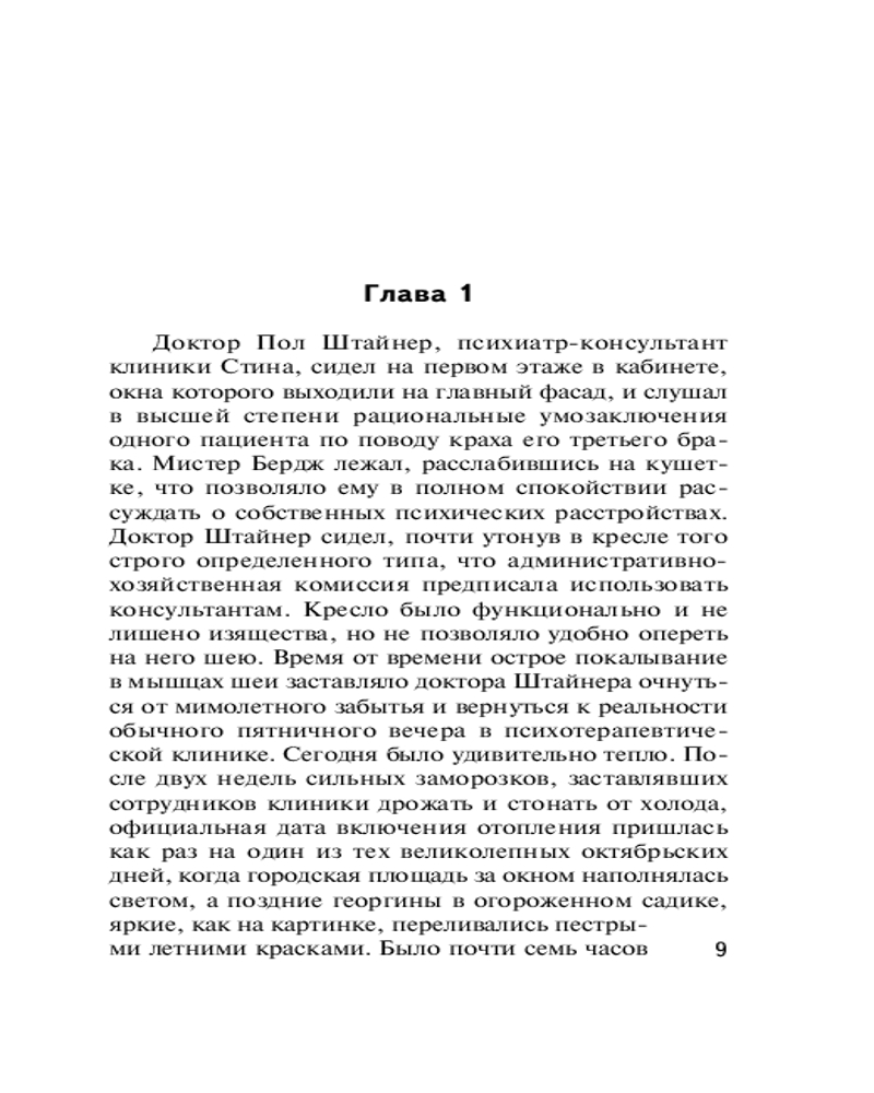 💳 Оплатить за товар можно при получении 🇰🇿 Есть бесплатная доставка по Казахстану от 1 дня 🎁 Копите бонусы с каждой покупки Серия: Эксклюзивная классика В подвале дорогой психотерапевтической клиники обнаружен труп жестоко убитой женщины. Многоопытный следователь Адам Дэлглиш, ведущий расследование, вскоре понимает: преступление мог совершить практически любой сотрудник клиники, за респектабельным фасадом которой скрывается лабиринт темных страстей, интриг и амбиций. Никогда еще не приходилось Дэлглишу проигрывать схватку с преступниками. Но на сей раз убийца не уступает ему ни решительностью, ни интеллектом, — и кажется, обгоняет его на шаг... |