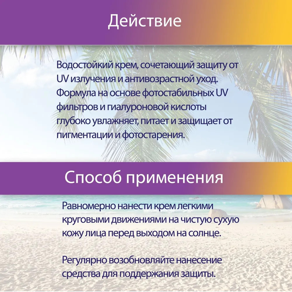 Фитокосметик Гиалуроновый солнцезащитный крем для лица SPF 50В данный момент этот товар отсутствует в продаже. Возможно, у нас найдется аналогичный или похожий товар здесь. Водостойкий крем, сочетающий защиту от UV излучения и антивозрастной уход. Формула на основе фотостабильных UV фильтров и гиалуроновой кислоты глубоко увлажняет, питает и защищает от пигментации и фотостарения. Термальная вода и масло авокадо поддерживают баланс влаги, пантенол восстанавливает и ускоряет регенерацию. Витамин Q10 защищает от воздействия свободных радикалов и поддерживает молодость кожи. |