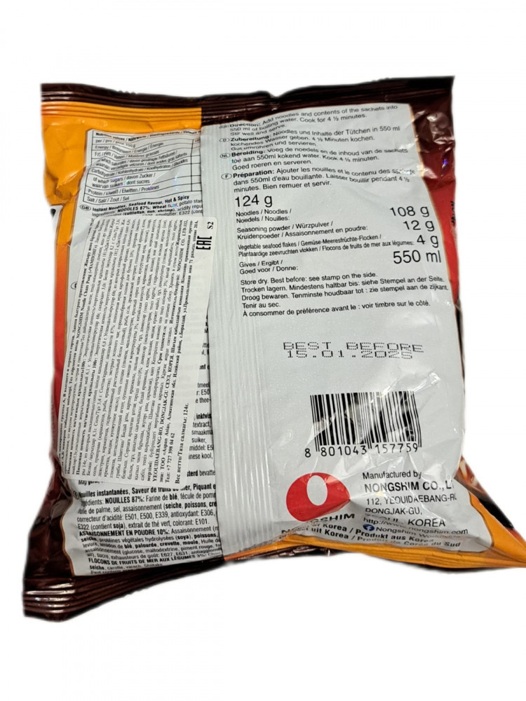 Nongshim Лапша быстрого приготовления острая с морепродуктами «Cham pong»