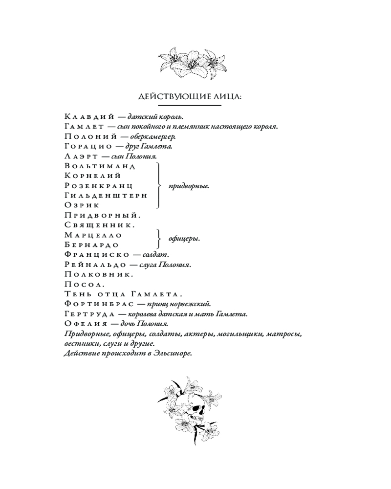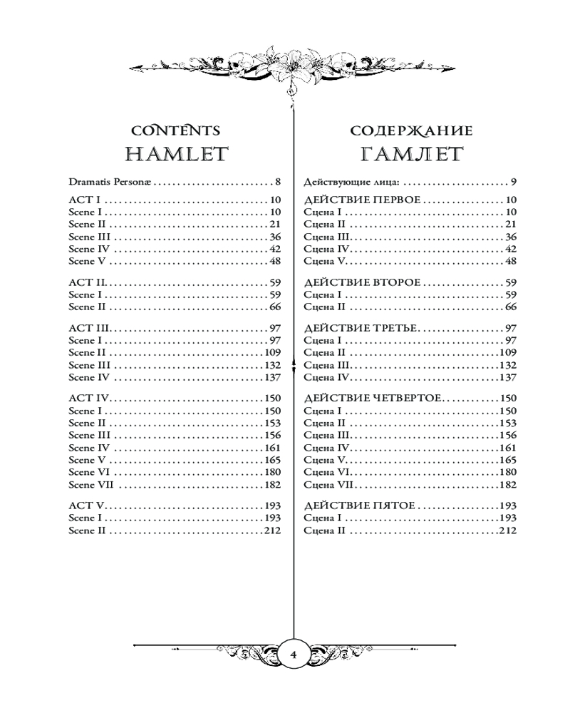 В настоящем издании оригинальный текст бессмертных трагедий Уильяма Шекспира «Макбет» и «Гамлет» приводится с параллельным переводом А. И. Кронеберга и С. М. Соловьева в сопровождении утонченных гравюр XIX века, выполненных такими мастерами как Кенни Мидоус, Джон Гилберт и Генри Силус, а также гравюрами из иллюстрированного издания Шекспира под редакцией Чарльза Найта.