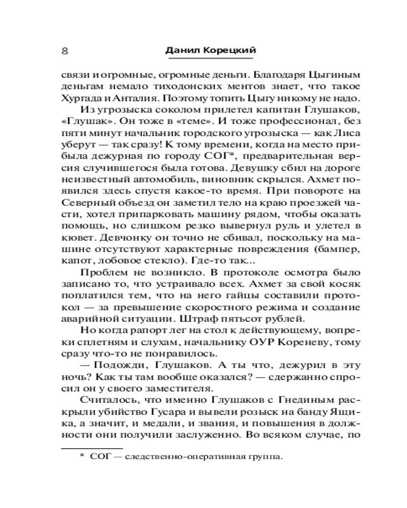 💳 Оплатить за товар можно при получении 🇰🇿 Есть бесплатная доставка по Казахстану от 1 дня 🎁 Копите бонусы с каждой покупки Серия: Шпионы и все остальные. Данил Корецкий (м) В бурлящем котле криминальной жизни Тиходонска всплывает новая «серия»: убийства владельцев дорогих автомобилей, которые, при этом, не угоняют. Криминальный «почерк» выдает женскую руку, и уголовный розыск начинает отработку девушек легкого и полулегкого поведения, в число которых неожиданно, но закономерно, попадает молодая жена начальника УР Коренева. А тут еще в город возвращается Координатор из сгинувшей банды Колдуна, который хочет получить с Коренева большой долг, на Лиса восстанавливается неисполненный «заказ», и получается так, что все неожиданные предсказания красавицы-цыганки сбываются одно за другим. Борьба с криминалом хитроумного Лиса на этот раз затрудняется проблемами в личной жизни. Сможет ли он выйти победителем из ситуаций, которых с ним не случалось за все годы службы в уголовном розыске? |