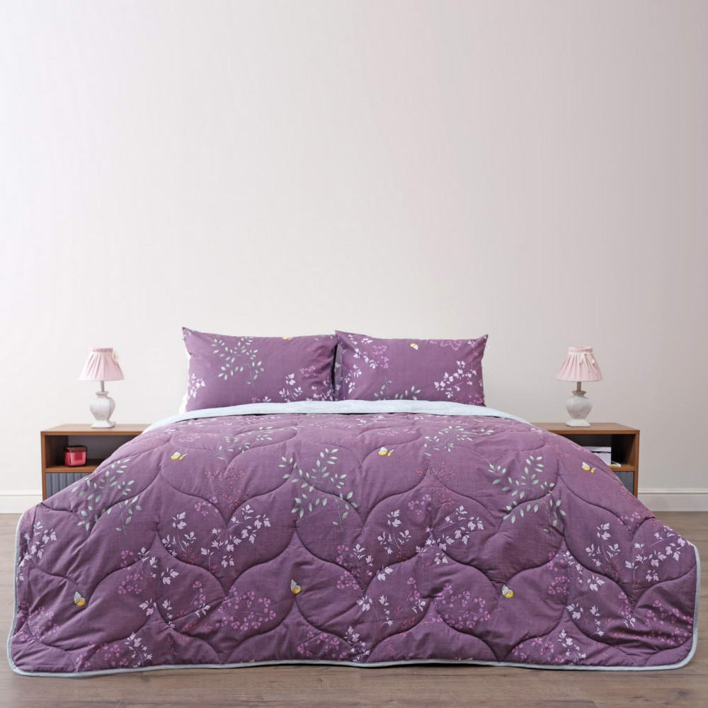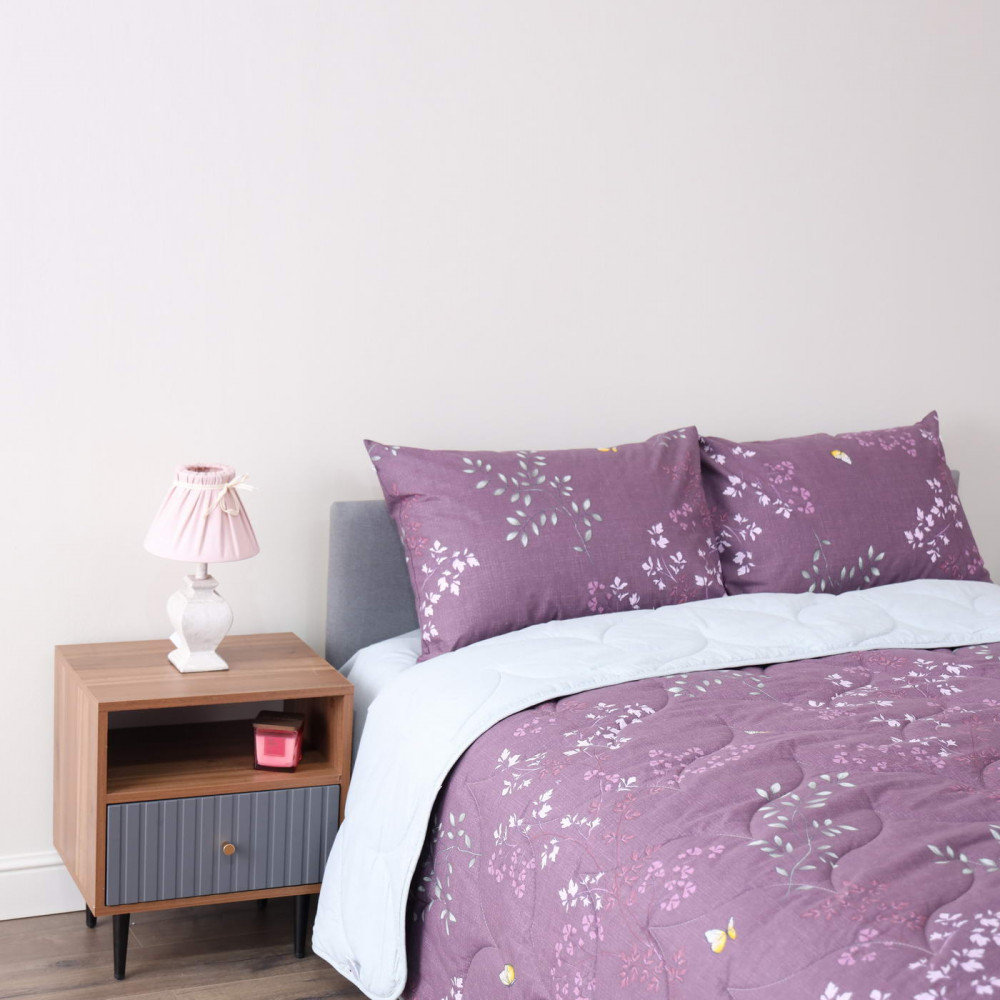 Двустороннее всесезонное одеяло можно стелить лицевой или оборотной стороной, в зависимости от настроения. Комплект изготовлен из ранфорса, такая ткань отвечает всем современным стандартам и по уровню комфорта не уступает сатину. Ранфорс долговечен, лёгок и приятен на ощупь. Комплект Мелвин легко стирается в обычной машине в бережном режиме и также легко гладится.