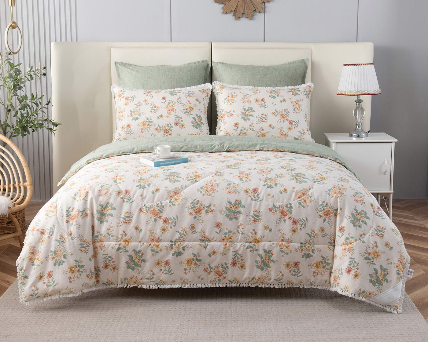 В комплекты комфортеров с одеялом Бернадетт входят наволочки, простыня и легкое всесезонное одеяло. Оцените это современное и очень удобное решение, которое идеально подходит тем, кто не любит возиться с пододеяльниками. Само одеяло тонкое и легкое, но под ним вам не будет холодно зимой или жарко летом. Такое одеяло можно использовать в любое время года, 100% хлопок гарантирует качественный сон, т.к. натуральная ткань не вызывает аллергии, хорошо впитывает влагу и позволяет коже дышать. Прочная и красивая ткань сатин, из которого выполнен комплект, мягкая и гладкая на ощупь, при этом вещи не теряют форму. Набор с одеялом прослужит вам достаточно долго без потери своего качества, а рисунок не потускнеет даже после стирок. Комплект легко стирается в обычной машине и также легко гладится. В нашем магазине представлены комплекты в разных тонах и с различными рисунками на выбор. Наборы упакованы в красивые подарочные коробки и могут послужить отличным решением для подарка.