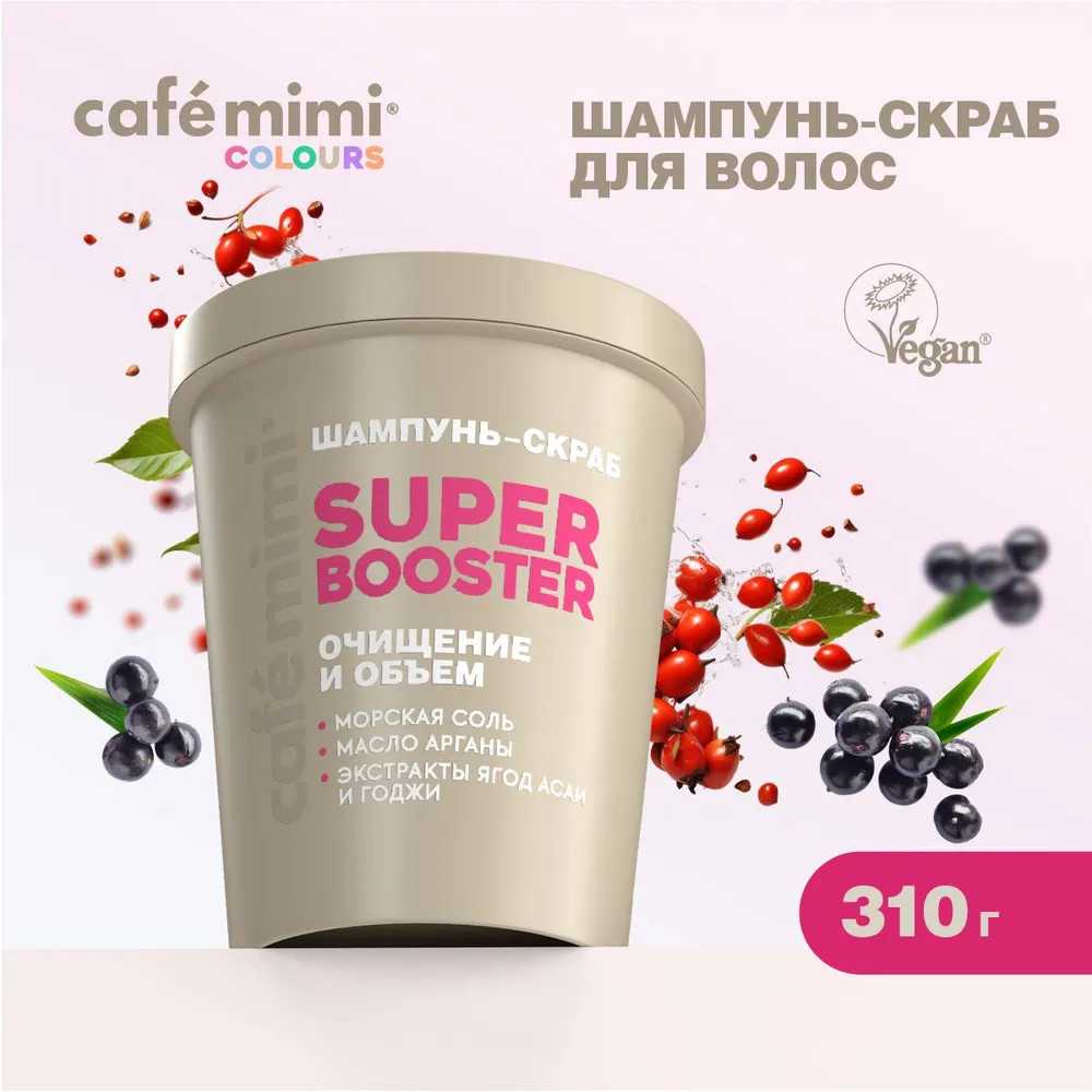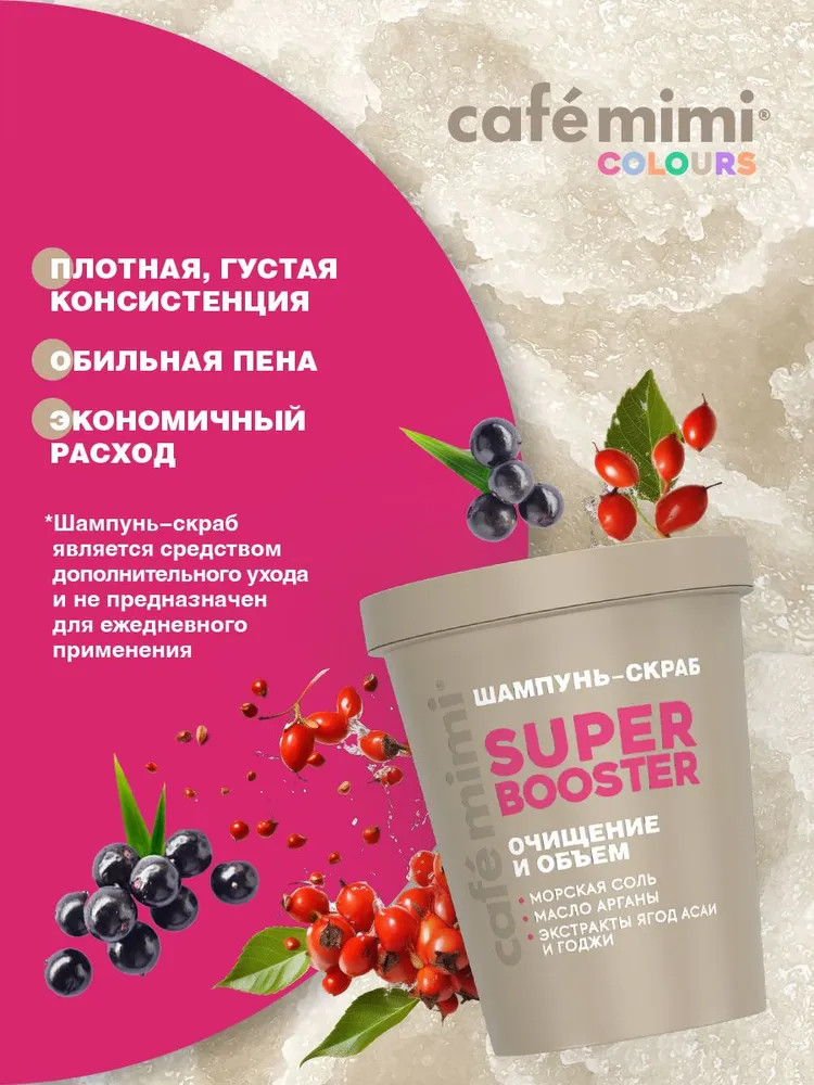 Cafe mimi Шампунь-скраб для волос «Super booster» очищение и объем