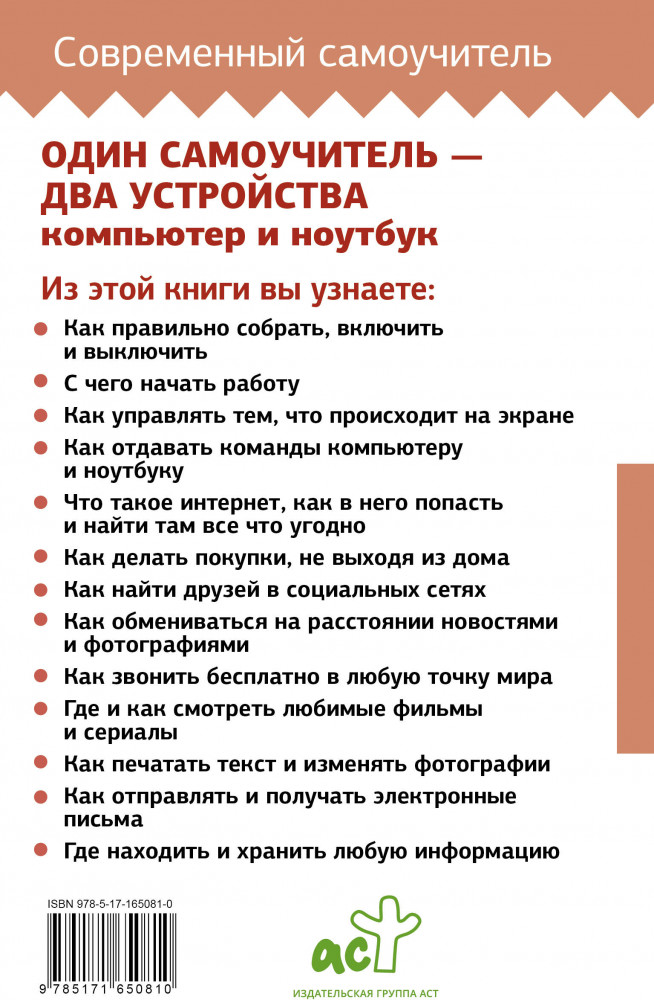 Ноутбук и компьютер совсем просто и очень быстро. Современное руководство для любого возрастаВ данный момент этот товар отсутствует в продаже. Возможно, у нас найдется аналогичный или похожий товар здесь. Серия: Современный самоучитель Перед вами новейший самоучитель, который научит вас пользоваться сразу двумя устройствами — компьютером и ноутбуком! Только самая свежая и актуальная информация. Главная особенность книг Ивана Жукова — простота. В них нет сложных слов, длинных объяснений и ненужной информации. Все описано по шагам, и каждый сопровождается картинкой. Начав с самых азов, к концу чтения вы сможете полноценно пользоваться любым из этих устройств, в том числе искать информацию в интернете, делать там покупки, смотреть фильмы и бесплатно общаться с любым человеком, где бы он ни находился. Этот самоучитель рассказывает о самых современных компьютерах и ноутбуках (с операционной системой Windows 11), но написан так, что, даже если устройство у вас старое, вы легко разберетесь в нем с помощью этой книги. Вас всему научит одна эта книга! Главное — сразу пробовать то, что в ней написано, — так вы освоитесь гораздо быстрее. |