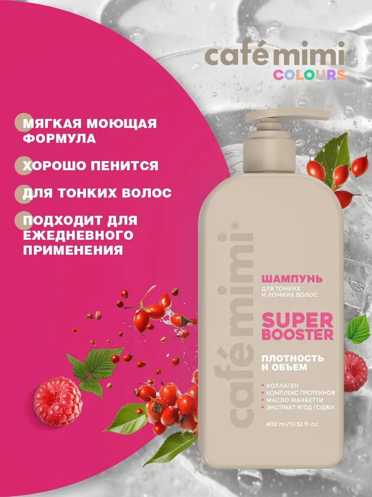Cafe mimi Шампунь для волос «Super booster» плотность и объем