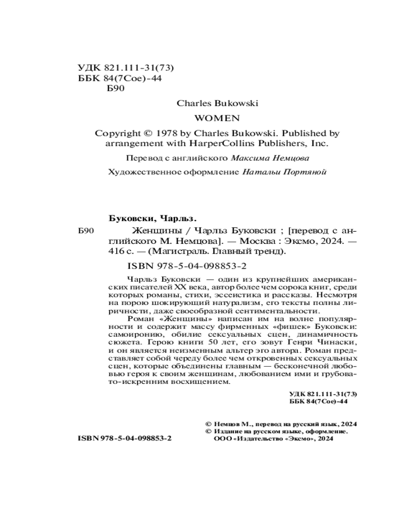| Женщины Чарльз Буковски +123 (бонуса)