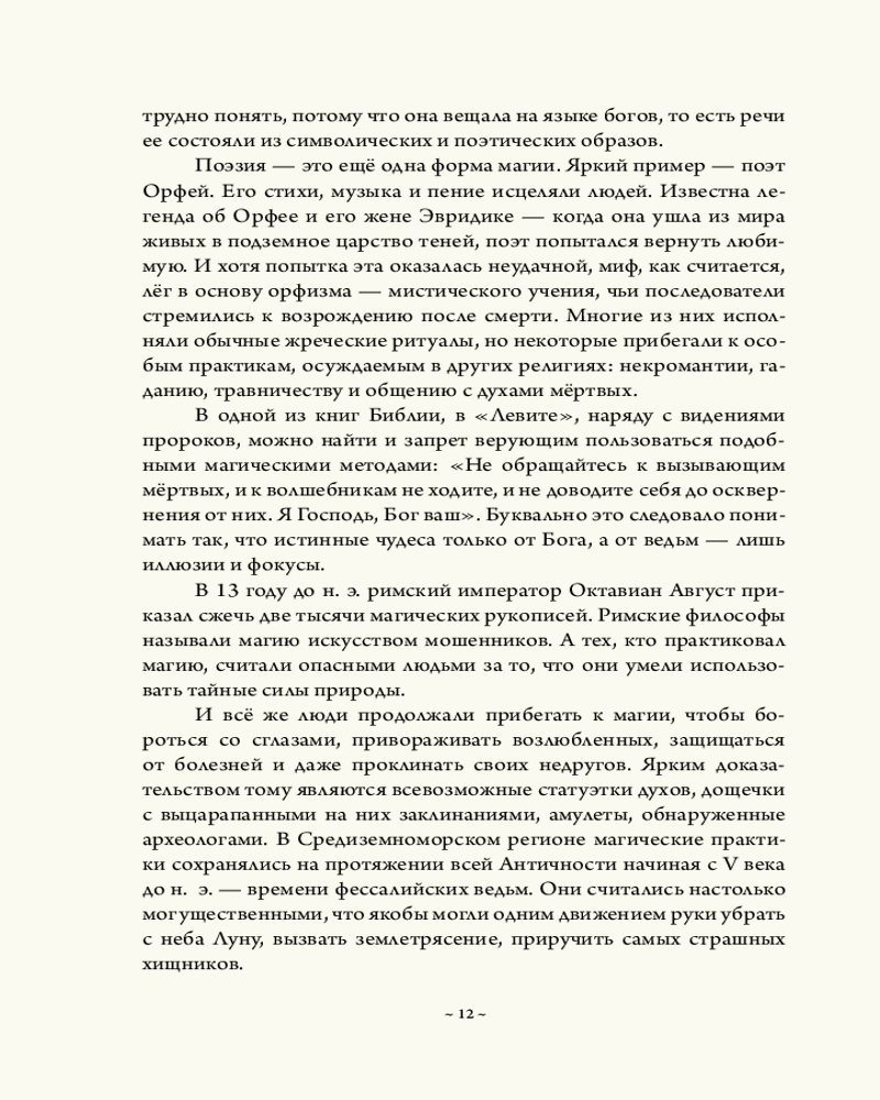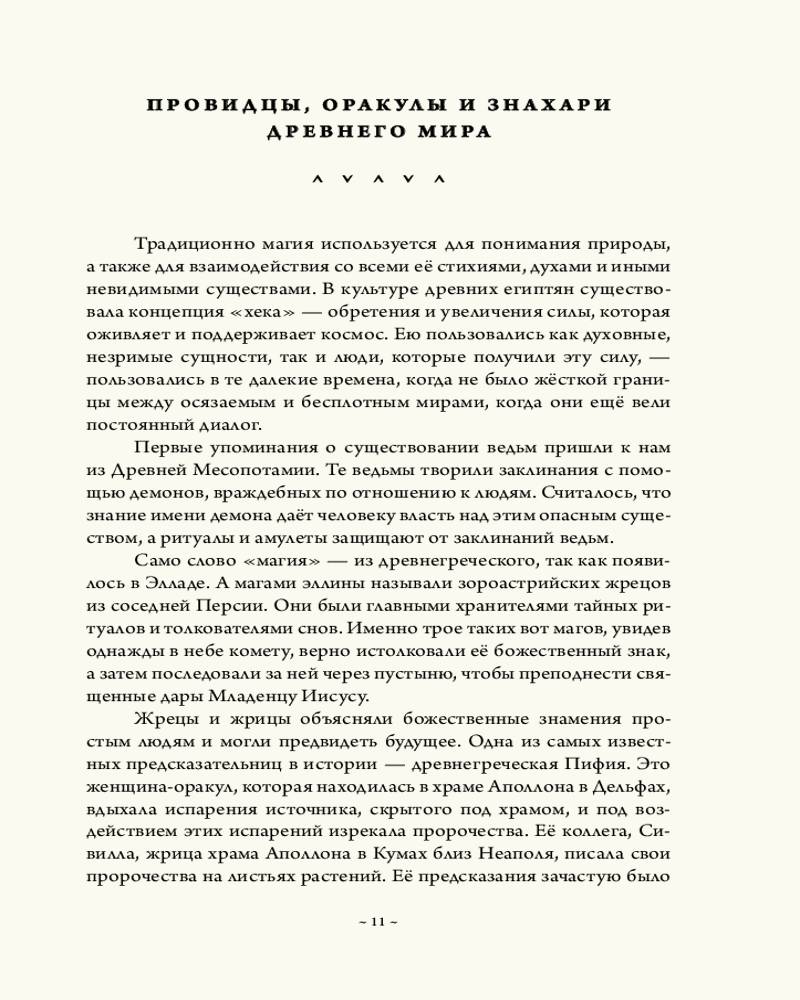 Серия: Книги из запретной секции Книга, которую мог бы найти Гарри Поттер в магической библиотеке Хогвартса! Эта красочная энциклопедия проведёт читателя по пути магии, расскажет о её истории, о самых влиятельных и знаменитых ведьмах и колдунах, гадалках и ясновидящих, пророках и оракулах, чародеях и знахарях, о зельях и амулетах, а также об атрибутах и заклинаниях для начинающих волшебников. Автор книги, Франческа Маттеони, поможет приподнять завесу тайны удивительного магического мира, где реальность сливается с фантазией, а древнее колдовство — с современными чудесами, стать чуть ближе к природе и уловить искры волшебства в самых обыденных вещах. Книга украшена уникальными иллюстрациями Элизы Мачеллари. |