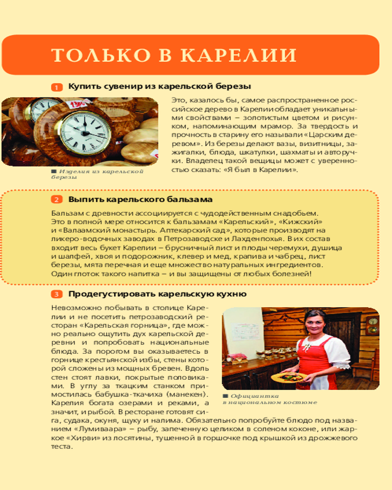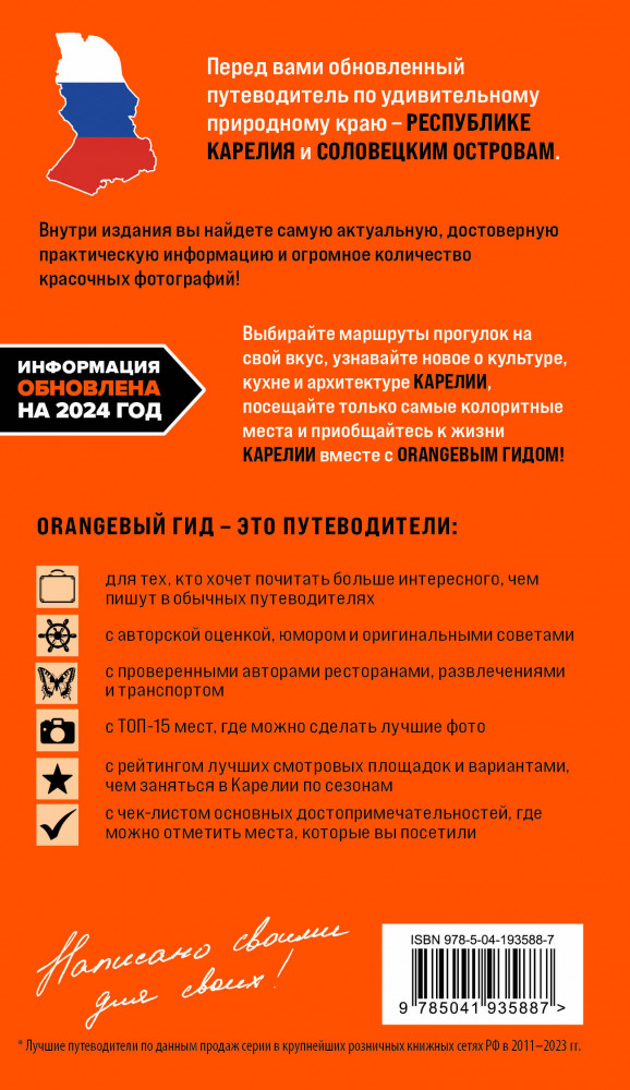 💳 Оплатить за товар можно при получении 🇰🇿 Есть бесплатная доставка по Казахстану от 1 дня 🎁 Копите бонусы с каждой покупки Серия: Оранжевый гид (обложка) Новое издание путеводителя по Карелии и Соловецким островам серии «Оранжевый гид» — самой разнообразной и популярной серии путеводителей с яркой обложкой. Внутри еще больше красочных фотографий, полезных советов от автора, куда пойти и как провести время в Карелии, маршруты поездок и прогулок. А также чек-лист достопримечательностей, чтобы вы смогли отметить те места, которые успели посмотреть! Отправляйтесь в путешествие вместе с «Оранжевым гидом», который сделает отпуск незабываемым! В гиде содержится актуальная и полезная информация о регионе, советы, как лучше провести свой отпуск, куда сходить, что попробовать, чем заняться, а также список главных достопримечательностей. Здесь вы найдете описания самых интересных мест в Медвежьегорском и Сортавальском районах, Архангельской области, в горном парке Рускеала и многих других районах Карелии. С «Оранжевым гидом» вы успеете всё и не пропустите ничего! |