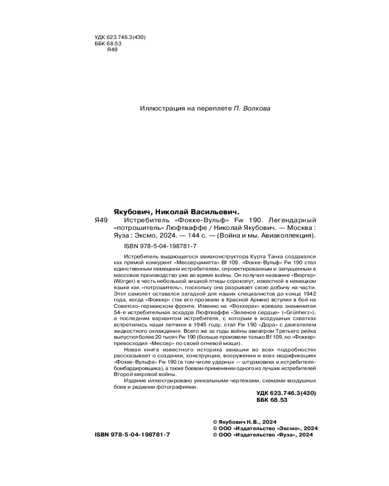 💳 Оплатить за товар можно при получении 🇰🇿 Есть бесплатная доставка по Казахстану 🎁 Копите бонусы с каждой покупки Серия: Война и мы. Авиаколлекция Истребитель выдающегося авиаконструктора Курта Танка создавался как прямой конкурент «Мессершмитта» Bf 109. «Фокке-Вульф» Fw 190 стал единственным немецким истребителем, спроектированным и запущенным в массовое производство уже во время войны. Он получил название «Вюргер» (Würger) в честь небольшой хищной птицы сорокопут, известной в немецком языке как «потрошитель», поскольку она разрывает свою добычу на части. Этот самолет оставался загадкой для наших специалистов до конца 1942 года, когда «Фоккер» (так его прозвали в Красной Армии) вступил в бой на Советско-германском фронте. |