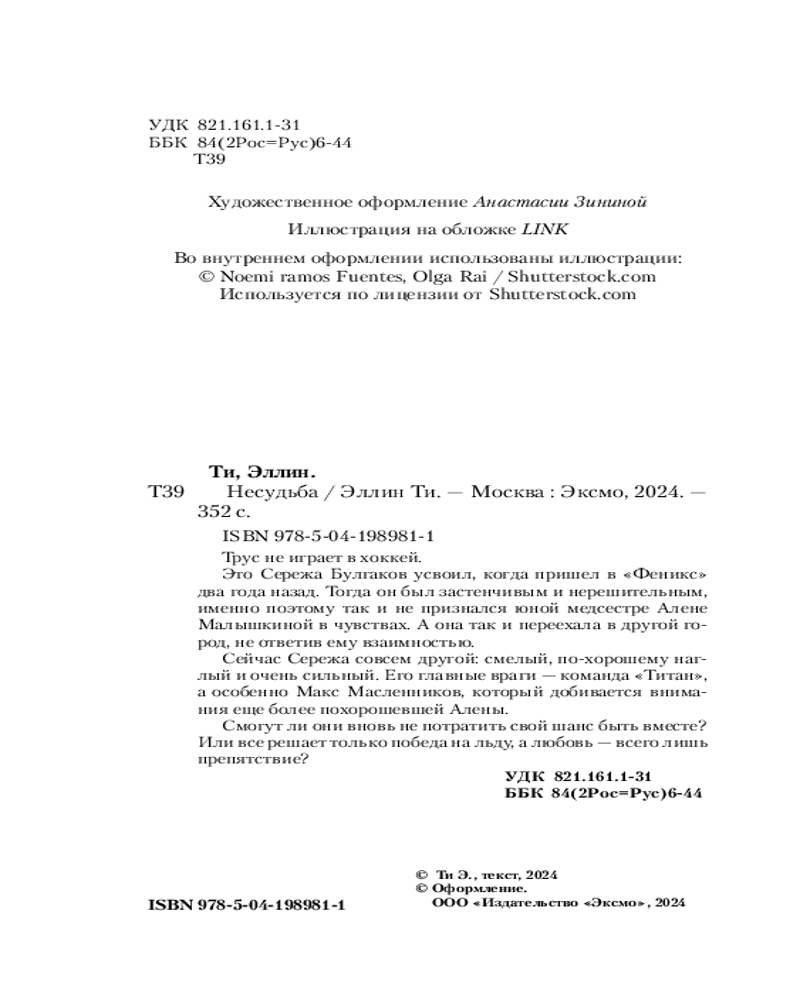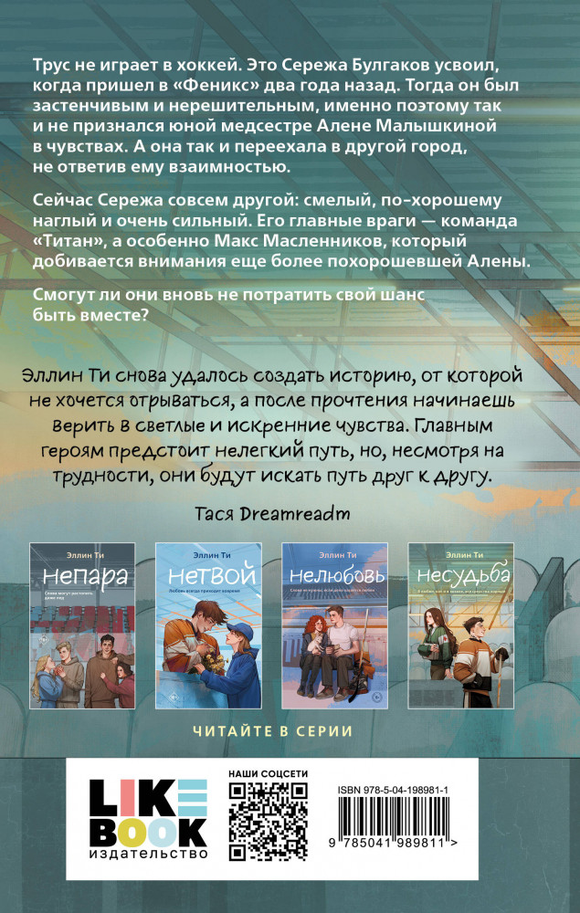 💳 Оплатить за товар можно при получении 🇰🇿 Есть бесплатная доставка по Казахстану от 1 дня 🎁 Копите бонусы с каждой покупки Серия: Young Adult. Любовь растопит даже лед. Романтика от Эллин Ти Четвертая часть в пенталогии про нежную любовь и горячих хоккеистов из команды «Феникс»! |