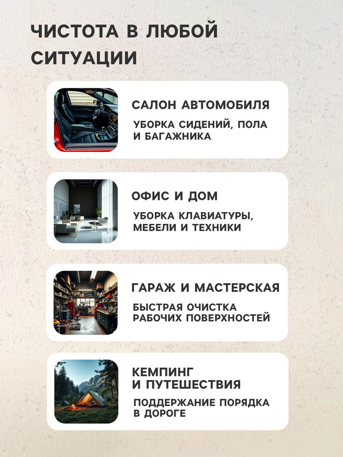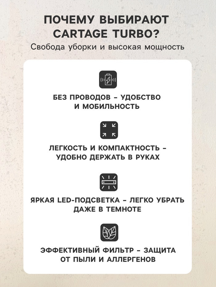 Cartage Пылесос автомобильный «Turbo»В данный момент этот товар отсутствует в продаже. Возможно, у нас найдется аналогичный или похожий товар здесь. Пылесос автомобильный CARTAGE идеален для уборки салона автомобиля. Мощность 120 Вт и 3 универсальные насадки позволяют собрать пыль, песок, пепел даже из самых труднодоступных мест салона. Питание от бортовой электросети легкового автомобиля 12В позволяет пользоваться пылесосом в любом удобном для вас месте. Компактный размер позволяет хранить пылесос в багажнике автомобиля. Встроенный светодиод облегчит уборку в темных уголках салона. |