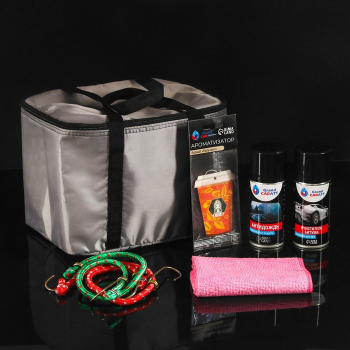Набор автомобилиста подарочный Grand Caratt в термосумке включает в себя 6 необходимых предметов для каждого водителя. Стильный и компактный дизайн делает его отличным выбором для подарка.