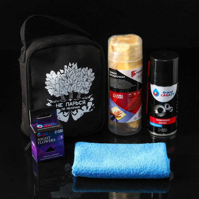Подарочный набор автомобилиста Grand Caratt «Не парься» — идеальный выбор для тех, кто ценит комфорт и функциональность. Этот набор станет полезным дополнением к арсеналу любого автолюбителя и будет служить отличным напоминанием о вашей заботе и внимании. В состав данного набора входит всё самое необходимое для поддержания чистоты и порядка в автомобиле, а также для ухода за его внешним видом. Все предметы аккуратно упакованы в удобную и стильную сумку, которая позволит легко хранить и транспортировать набор.