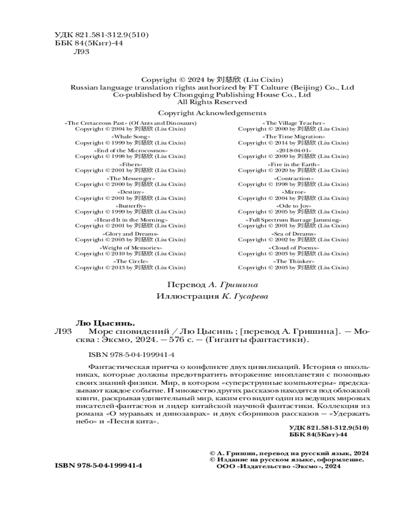 💳 Оплатить за товар можно при получении 🇰🇿 Есть бесплатная доставка по Казахстану от 1 дня 🎁 Копите бонусы с каждой покупки Серия: Гиганты фантастики Лю Цысинь — лауреат премии Фонда Артура Кларка; «За влияние воображения на общество»; премии Sky Award «За особый взгляд»; Зал славы китайских премий «Галактика» и «Туманность» как лучший автор, так и за особый вклад в фантастику. |