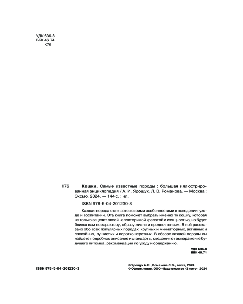 Самые известные породы. Кошки. Большая иллюстрированная энциклопедияАлина Игоревна Ярощук, Людмила Владимировна Романова -20% +167