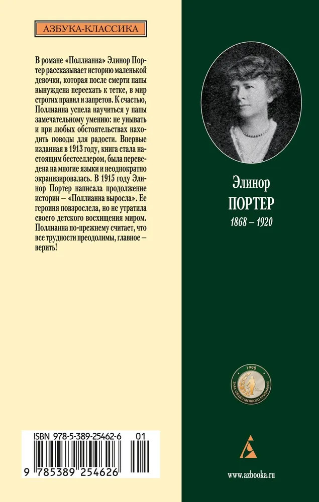 💳 Оплатить за товар можно при получении 🇰🇿 Есть бесплатная доставка по Казахстану от 1 дня 🎁 Копите бонусы с каждой покупки Серия: Азбука-классика (pocket-book) В романе «Поллианна» Элинор Портер рассказывает историю маленькой девочки, которая после смерти папы вынуждена переехать к тетке, в мир строгих правил и запретов. К счастью, Поллианна успела научиться у папы замечательному умению: не унывать и при любых обстоятельствах находить поводы для радости. Впервые изданная в 1913 году, книга стала настоящим бестселлером, была переведена на многие языки и неоднократно экранизировалась. В 1915 году Элинор Портер написала продолжение истории — «Поллианна выросла». Ее героиня повзрослела, но не утратила своего детского восхищения миром. Поллианна по-прежнему считает, что все трудности преодолимы, главное — верить! |
