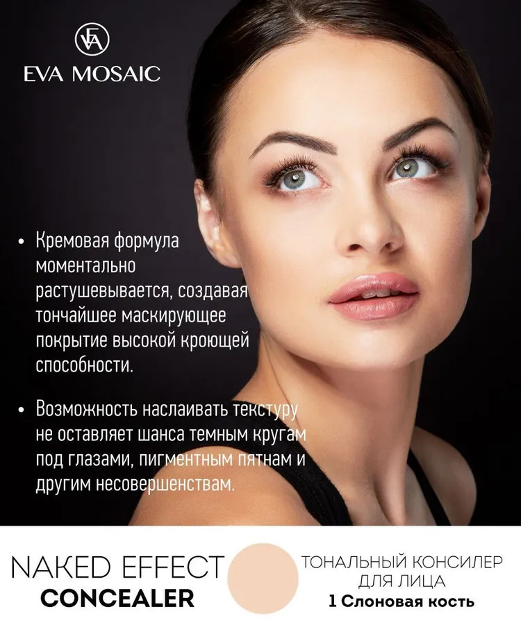 Eva Mosaic Консилер тональный «Naked Effect Concealer New», оттенок 01 Слоновая кость