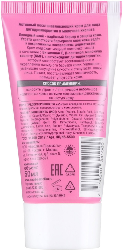 Отзывы «Крем для лица активный восстанавливающий с дигидрокверцетином и молочной кислотой»