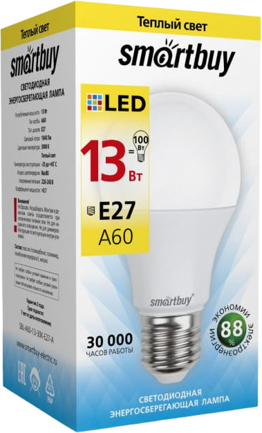 Лампа Smartbuy-A60-13W/3000/E27 (SBL-A60-13-30K-E27-A):
