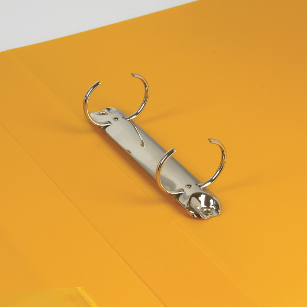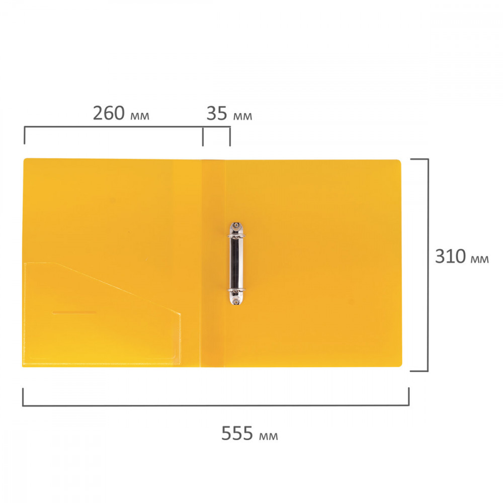Папка стандартного формата А4 вмещает до 270 листов. Изготовлена из высококачественного полипропилена толщиной 0,9 мм с оригинальной линейной фактурой. Допускается влажная обработка поверхности. Внутренняя сторона обложки снабжена прозрачным карманом. Для идентификации имеется сменный бумажный корешок. Ширина корешка составляет 35 мм. Папка оснащена двумя кольцами, которые обеспечивают надежное хранение документов. В неё можно вставить файлы или проколотые дыроколом листы и, при необходимости, заменить их на другие. Каждая папка упакована в индивидуальный пакет.