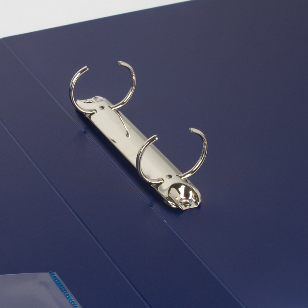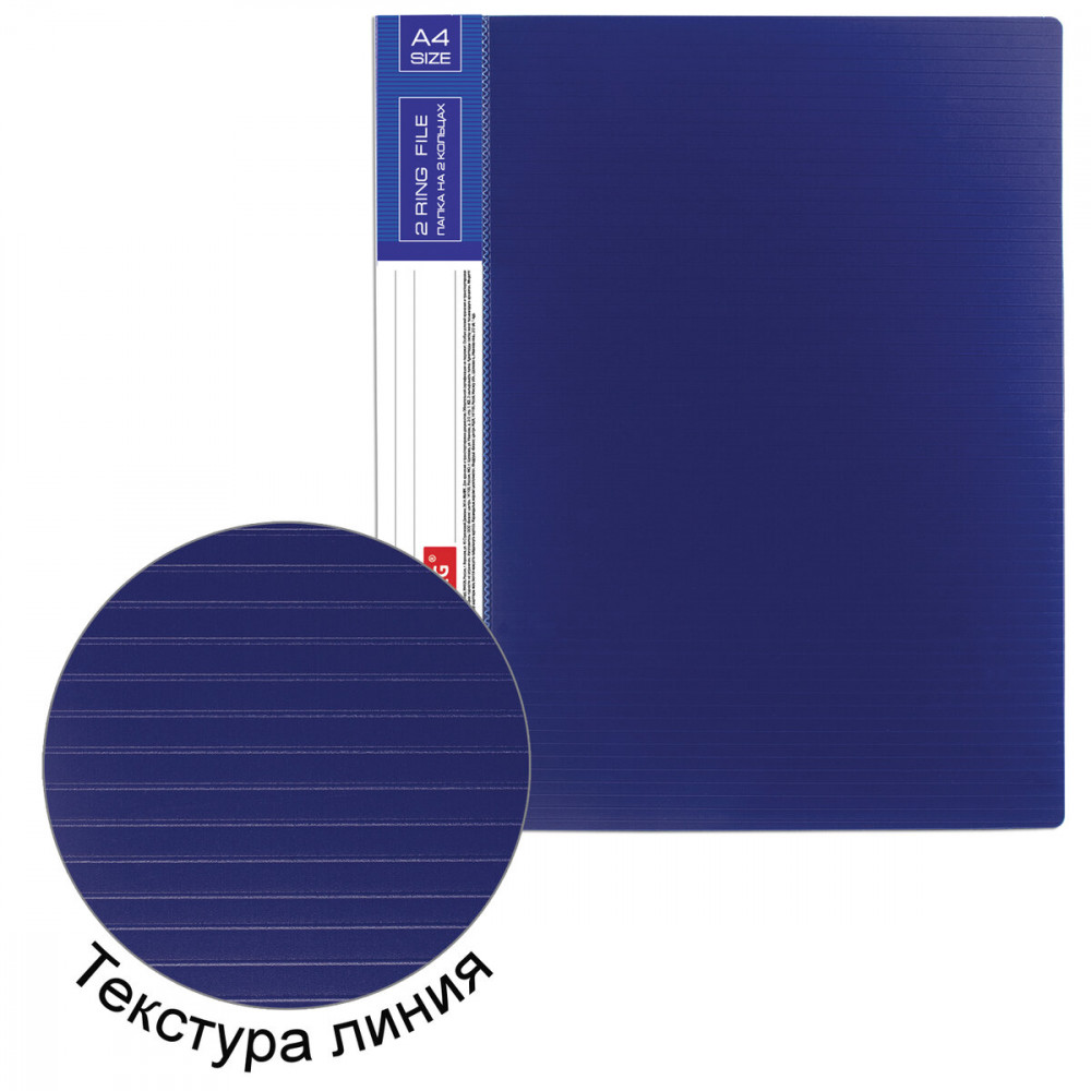 Папка стандартного формата А4 вмещает до 270 листов. Изготовлена из высококачественного полипропилена толщиной 0,9 мм с оригинальной линейной фактурой. Допускается влажная обработка поверхности. Внутренняя сторона обложки снабжена прозрачным карманом. Для идентификации имеется сменный бумажный корешок. Ширина корешка составляет 35 мм. Папка оснащена двумя кольцами, которые обеспечивают надежное хранение документов. В неё можно вставить файлы или проколотые дыроколом листы и, при необходимости, заменить их на другие. Каждая папка упакована в индивидуальный пакет.