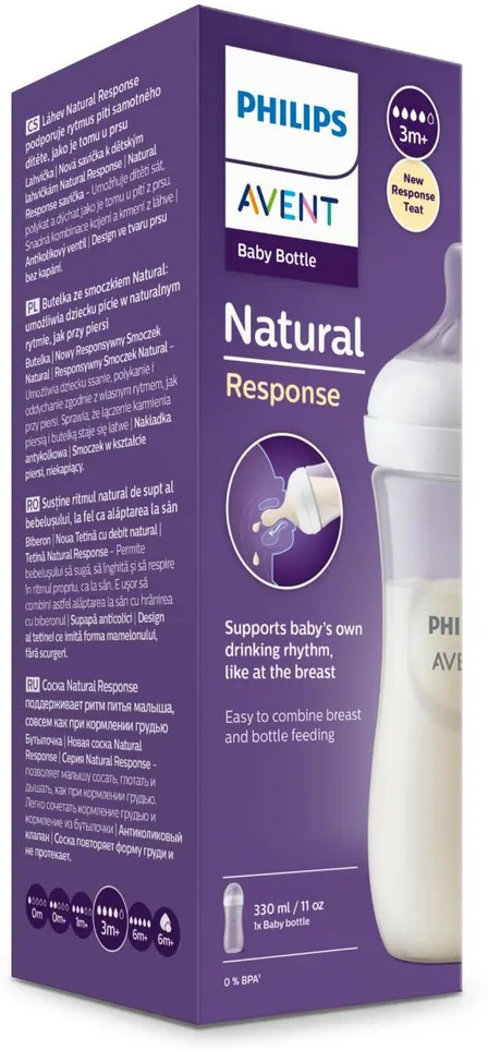 Серия: Natural Response Бутылочка для кормления с соской Philips Avent Natural Response поддерживает особый темп питья младенца. Соска бутылочки ощущается ребенком и работает как мамина грудь, подстраиваясь под ритм сосания именно вашего малыша. Повторение естественной физиологии процесса делает кормление максимально близким к грудному. Позволяет легко сочетать грудное вскармливание и кормление из бутылочки. Позволяет совмещать кормление грудью и из бутылочки. Бутылочка Natural Response: все лучшее для кормления вашего малыша от бренда № 1 в мире¹.