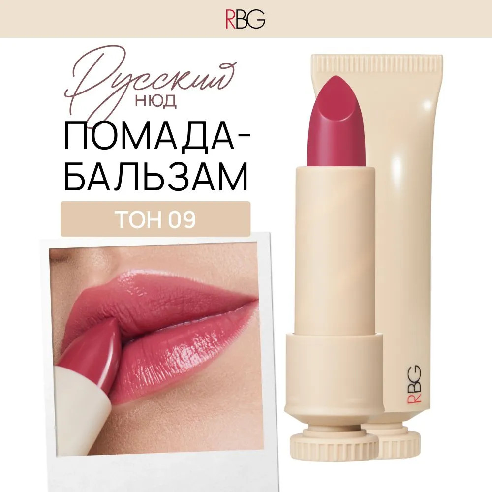 RBG Помада-бальзам для губ глянцевая «Русский нюд», тон 09 Полупрозрачный ярко-розовый