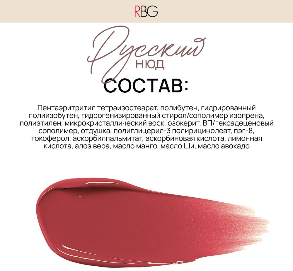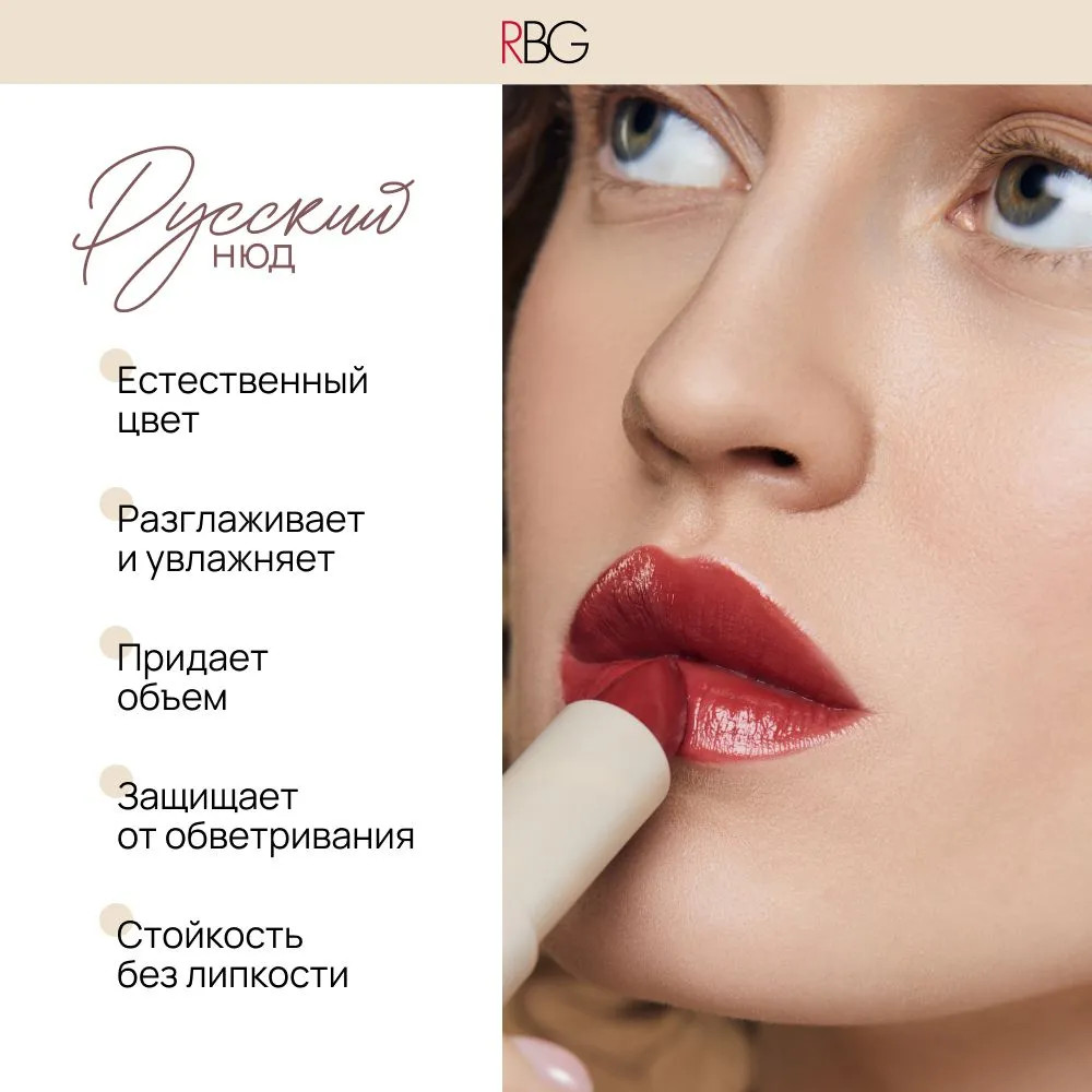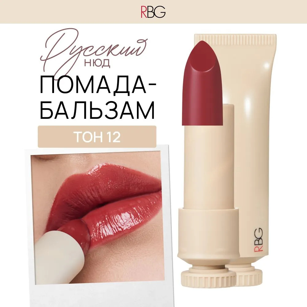 RBG Помада-бальзам для губ глянцевая «Русский нюд», тон 12 Полупрозрачный яркий терракотовый