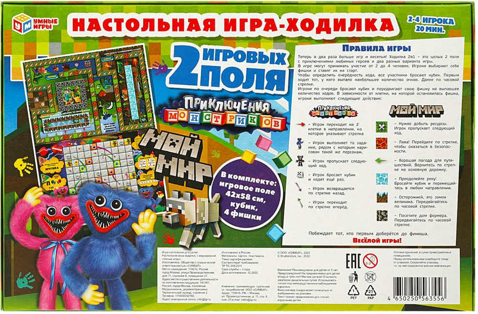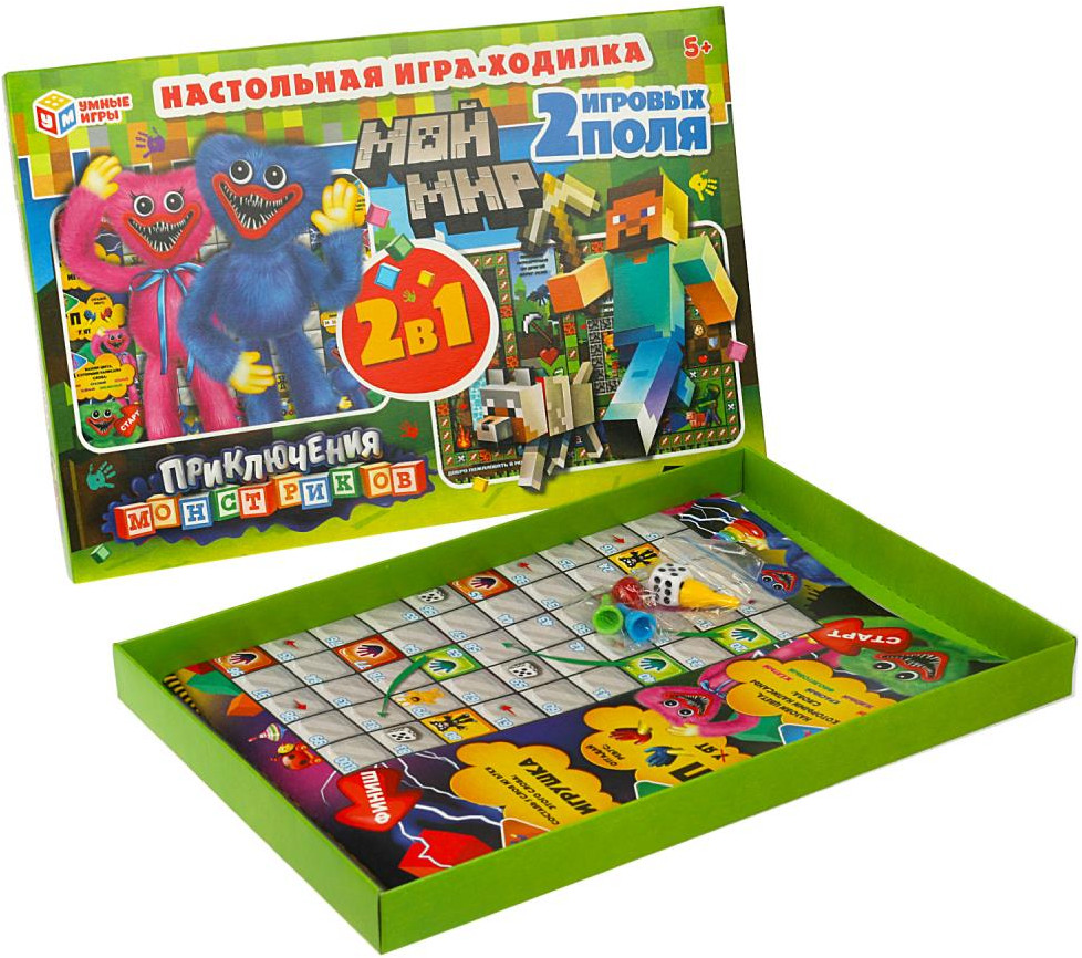 Умные игры Настольная игра-ходилка 2 в 1 «Приключения монстриков и Мой мир»