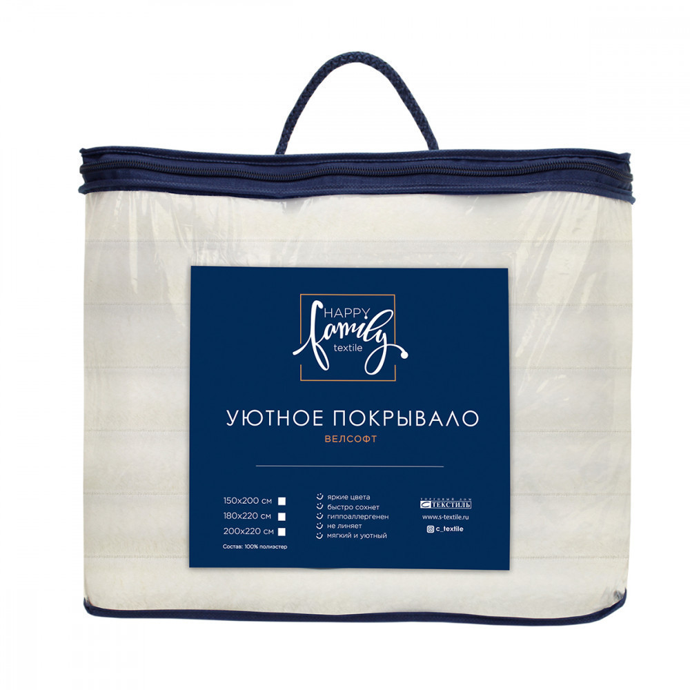 Плед и покрывала ТМ «Happy Family» выполнены из материала велсофт, очень мягкий и приятный на ощупь. Велсофт отлично сохраняет тепло и не отводит его от тела, плед достаточно легкий и не толстый, но при этом очень теплый, может использоваться в качестве осеннего, зимнего или весеннего. А в теплую погоду заменит легкое одеяло, флисовое, стеганное или вязаное покрывало. Декоративное покрывало отлично впишется в дизайн любой комнаты и украсит интерьер. Велюровый плед можно использовать для дома,...