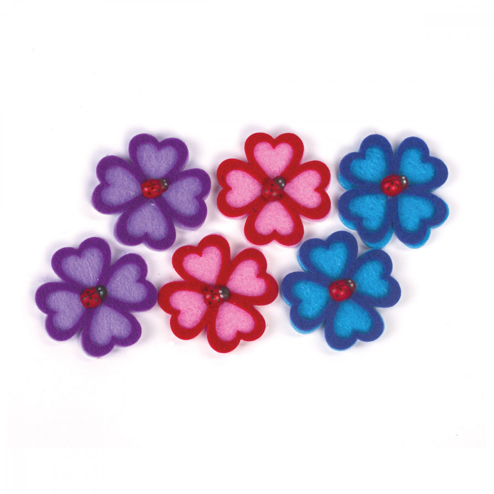 С помощью наклеек из фетра можно декорировать поделки, детали интерьера, одежду и гаджеты, реализовать самые смелые творческие идеи! В комплекте 6 красочных декоративных элементов в форме цветов. Предназначены для детей от 3 лет. Размер 4 × 4 см. Поставляются в пакете с европодвесом. Качественный клеевой слой обеспечит надежную фиксацию на любых поверхностях. Творите с наклейками "Клевер" и воплощайте свои самые креативные идеи в реальность!