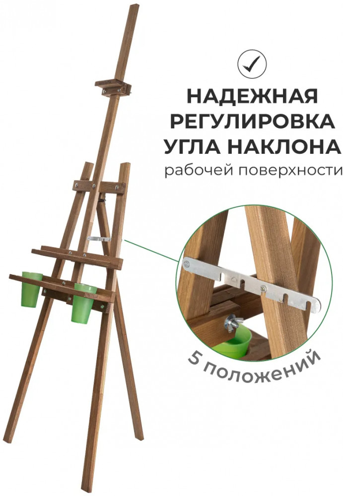💳 Оплатить за товар можно при получении 🇰🇿 Есть бесплатная доставка по Казахстану от 1 дня 🎁 Копите бонусы с каждой покупки Мольберт Лира классической конструкции из натурального дерева. Угол наклона опорной ноги можно изменять, высота полки и фиксатора холста также регулируется. Оснащен дополнительной широкой полкой для инструментов с отверстиями для стаканов с водой или кистей (стаканы входят в комплект, цвет произвольный). Вторая полка также позволяет работать с двумя холстами одновременно (например при создании копий). Бюджетный вариант мольберта с улучшенной функциональностью. Покрыт морилкой коричневого цвета. |